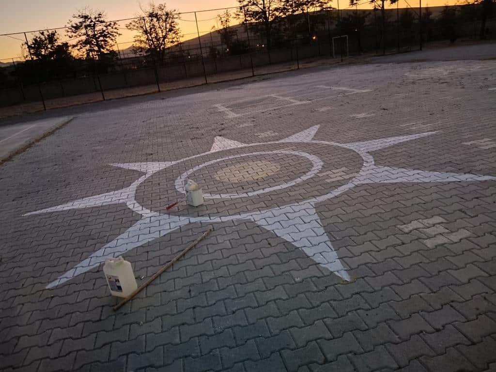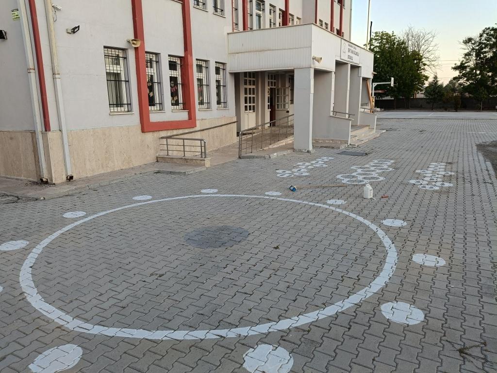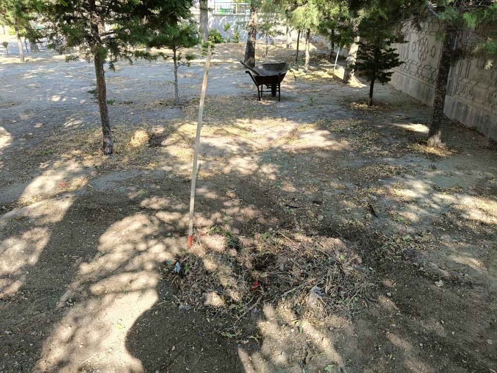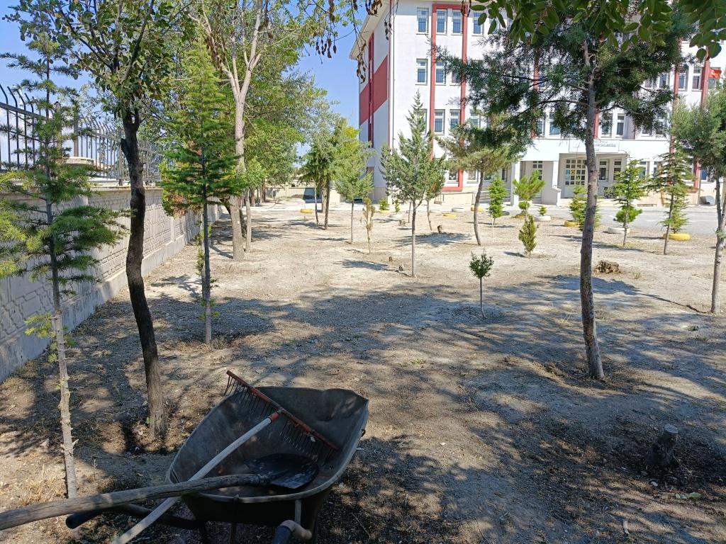 Okulumuz bahçesindeki çıkan yabani otlara ot ilacı atıldı. Ağaç diplerinde ve gövdelerinde çıkan süğgünler kesilerek budandı. Okul bahçesindeki yabani otlar, kurumuş ot ve yapraklar temizlendi. Okulumuz bahçesindeki oyun çizgileri boyanarak yenilendi.